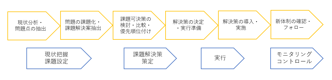このフェーズは、「社内の人だと、問題を問題として認識していない(当たり前だと思っている)」「声が大きい人に遠慮して問題点を表に出せない」「問題の原因を確認せず、すぐに解決策を考えようとする」等々、社内だけで進めるとうまくいかない場合があります。