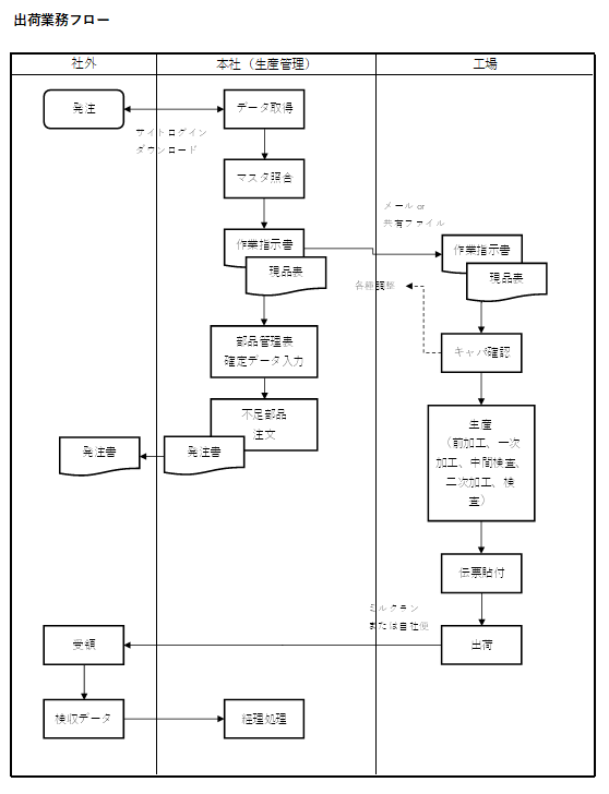 会社の仕事の流れを一枚で把握できる、という意味では優れたものなので、一度作ってみるのも良いです。