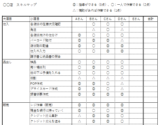 業務の棚卸ができていれば、力量管理(スキルマップ)を作成するのも容易なので、この段階で作っておくのも悪くありません。
