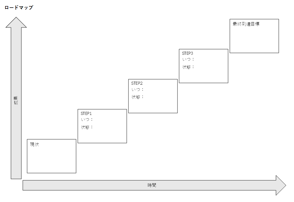 STEP1でマスタ整備をいつまでに、STEP2でモデル職場で実施、STEP3で全社で実施、というような、途中でチェックポイントになる項目を作っておくと、今後の進捗管理に役立ちます。