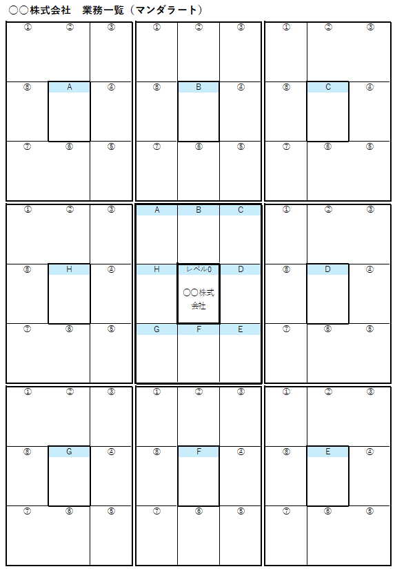 業務を可視化する方法はいくつかありますが、弊社では「マンダラート」をお勧めしています。