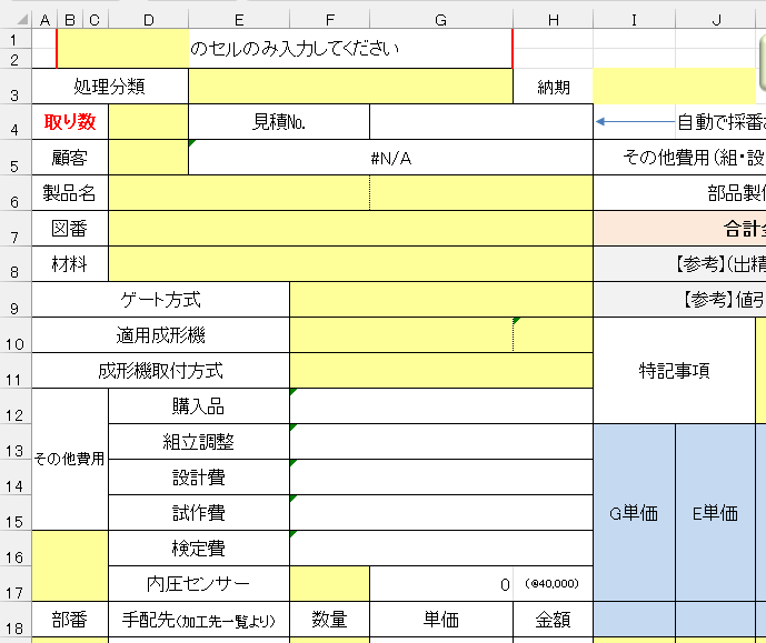 元々、先方の社内で使っていたエクセルに、番号の自動採番、見積書シートへの自動転記、所定のフォルダに見積書を自動保存するマクロを付け加えました。