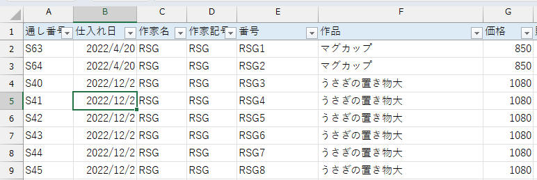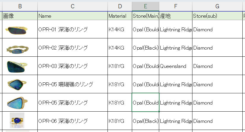 ジュエリー作家さんからのご依頼で、ジュエリーの在庫管理府ファイルを作成しました。