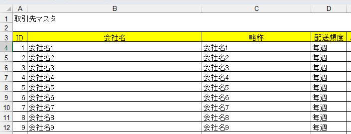 お花屋さんで、花を定期配送(毎週、隔週、月一)しているとのことで、マスターを作成し、毎週の送付数が分かるようにする一覧表を作成するとともに、ヤマト運輸の送り状データが自動作成されるようにしました。