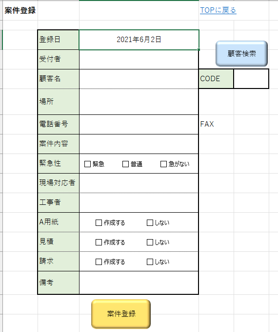 お互いが居ない間に、お客さんとやり取りした記録をきちんと残そう、情報共有しよう、ということでご依頼をいただきました。