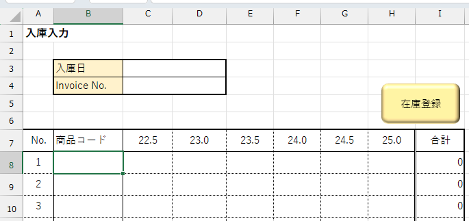 靴は商品コード(型番)はあるものの、サイズごとの品番(SKU)が存在しなかったため、入庫したらサイズ別に品番を自動作成することにしました。