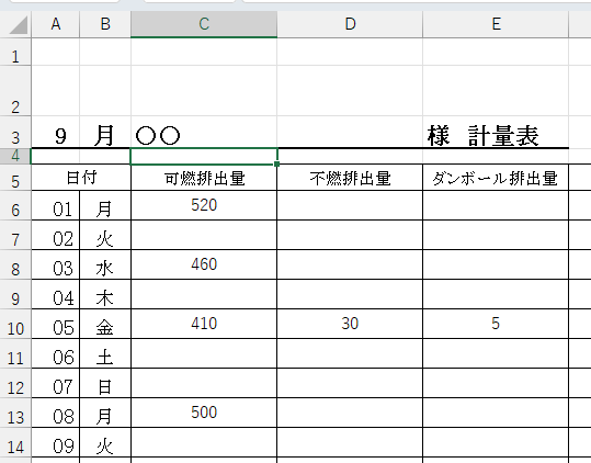 排出量自体はクラウド(Kintone)で取得していて、一か月分のデータ(CSV)から、顧客ごとの計量表を作って欲しいとの依頼でした。
