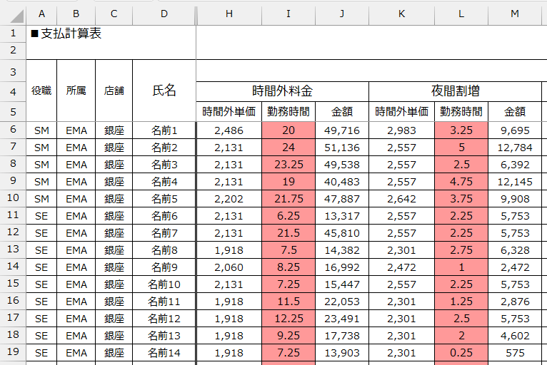 勤怠データを取り込んで、それぞれの人員のマスターから、個人別の金額、派遣会社別の金額を算出するシステムです。