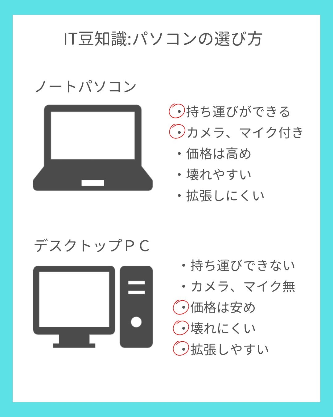 なお、パソコンの選び方については、別途詳しく書いていますので、下記の記事もご参照ください。